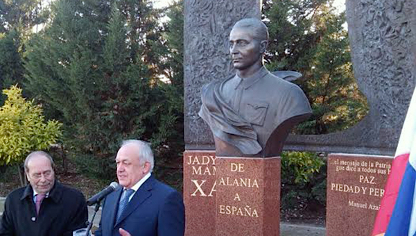 Het monument is toestand gekomen dankzij de inspanningen van de twee verenigingen die zich bezig houden met het herstel van het historisch geheugen ( la memoria histórica), Archivo Guerra y Exilio (AGE) uit Spanje en de culturele organisatie Azanbék uit Noord-Ossetië. Bij de onthulling was een speciale delegatie van de republiek Ossetië aanwezig onder leiding van de minister president van de republiek, Teimuraz Mansurov, die deelnam als vertegenwoordiger van de republiek, maar ook als een vertegenwoordiger van de familie. Verder was ook de Russische ambassadeur Yury Korchagin aanwezig alsmede de Russische onder-minister van Buitenlandse Zaken Alexey Meshkov.