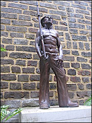 In de achtertuin van het Marx House staat een standbeeld ter herdenking van vier drukkers die als Interbrigadist zijn gesneuveld in Spanje.