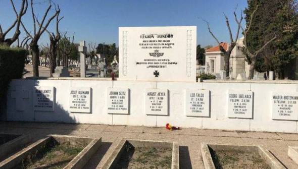 Tot voor een paar dagen geleden stond de voorzijde van een mausoleum ter ere van het Hitler-contingent en de zeven piloten in La Almudena. Nu is de voorkant verwijderd en staan alleen kleine tekens met de namen van degenen die daar begraven zijn . ‘Hier liggen Duitse piloten gevallen in de strijd voor een vrij Spanje. Duitse vliegeniers gedood door God en door Spanje ¡Presente! ‘, Zei het opschrift in het Castiliaans.