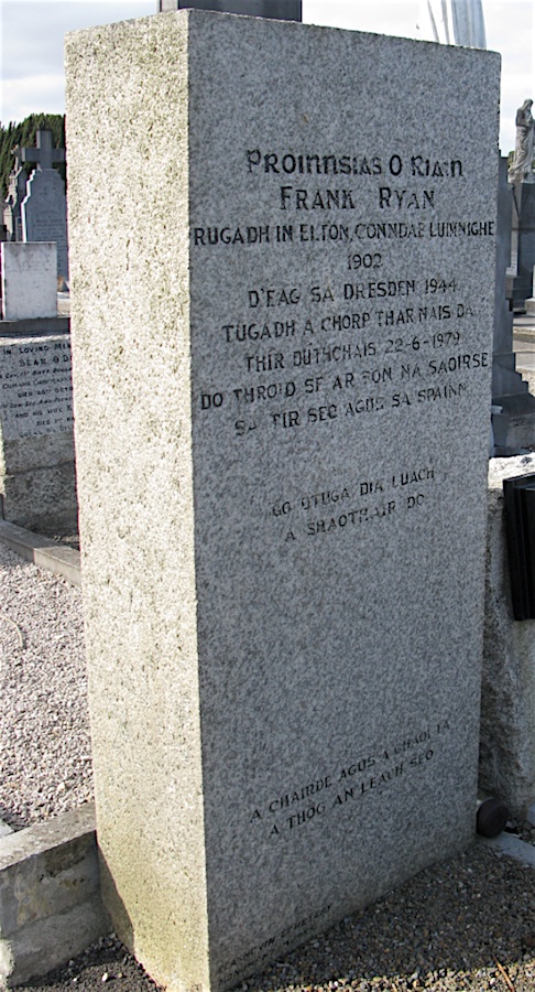 Toen de Nederlandse oud-Spanjestrijder Jo Brugman na WO2 in het Oost-Duitse Dresden belandde, hoorde hij dat daar ergens een oude strijdmakker uit de Internationale Brigades begraven moest liggen. Hij zocht en vond het graf van Frank Ryan, oud-commandant van de Ierse Spanje-vrijwilligers, die na gevangen genomen te zijn op 10 juni 1944 in Dresden was overleden. En zo kon in de sovjet-uitgave ‘De Solidariteit der Volkeren met de Spaanse Republiek’ worden vermeld: ‘Zijn stoffelijk overschot rust in de Duitse Democratische Republiek en zijn graf wordt liefdevol onderhouden door zijn voormalige wapenbroeders van de 11e Internationale Brigade.’