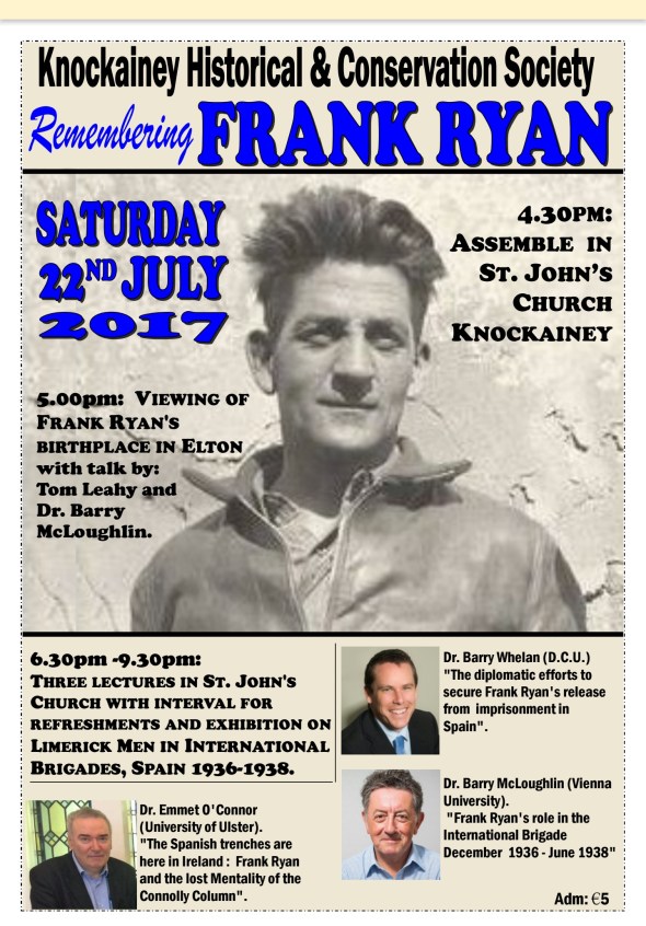 22 juli 2017 wordt een Frank Ryan lezingenreeks gehouden