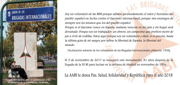 Op dezelfde manier willen we dit doen voor de Spanjestrijders Virgilio (die op 26 december 99 wordt), Josep Almudéver, Geoffrey Servante en Henry Diaz. Trouwens, we hebben net geleerd, via de website van onze Franse ACER-collega’s, van het bestaan van de Franse brigadist: Henry Diaz. Hij is 100 jaar oud