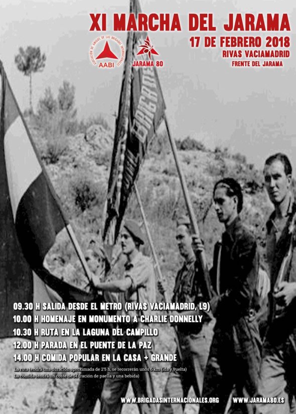Aankondiging internationale herdenkingsmars Jarama slag.