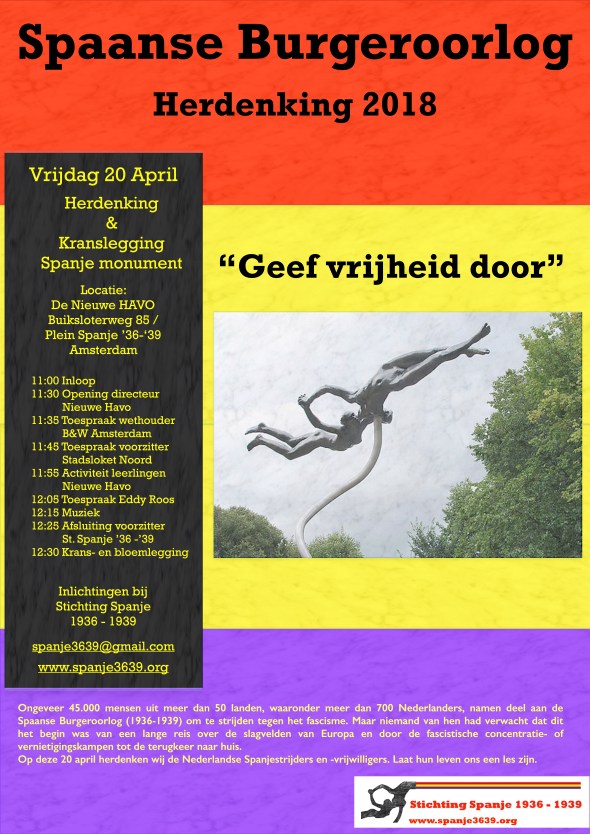 Herdenking Spaanse Burgeroorlog 20 april 2018 in Amsterdam