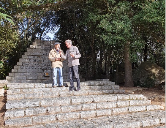 Joseph Lluis Fernandez is een van de oprichters van het monument, precies op de grens tussen Spanje en Frankrijk. Aan de voet ervan ligt altijd wel een bosje bloemen met daar omheen gewikkeld een lint van de Catalaanse vlag. Fernandez grijpt iedere gelegenheid om het verhaal van het monument te vertellen met beide handen aan, als een volleerd ambassadeur begint hij te vertellen. Zoals ook vandaag, tijdens deze toevallige ontmoeting.