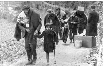 Het viertal sloeg begin 1939 op de vlucht voor de troepen van Franco. Een fotograaf legde het groepje vast toen ze de Franse grens waren overgestoken. Later dook deze foto in verschillende internationale media op, als illustratie van het leed dat zij met zich meedroegen, de bergen over naar Frankrijk. Eenmaal over de grens was het leed echter nog lang niet voorbij. De vader verdween in een Frans werkkamp en overleed niet lang daarna. De drie kinderen keerden terug naar Spanje, werden in een weeshuis opgesloten als nakomelingen van ‘roden’ en zagen pas jaren later de foto van hun vlucht